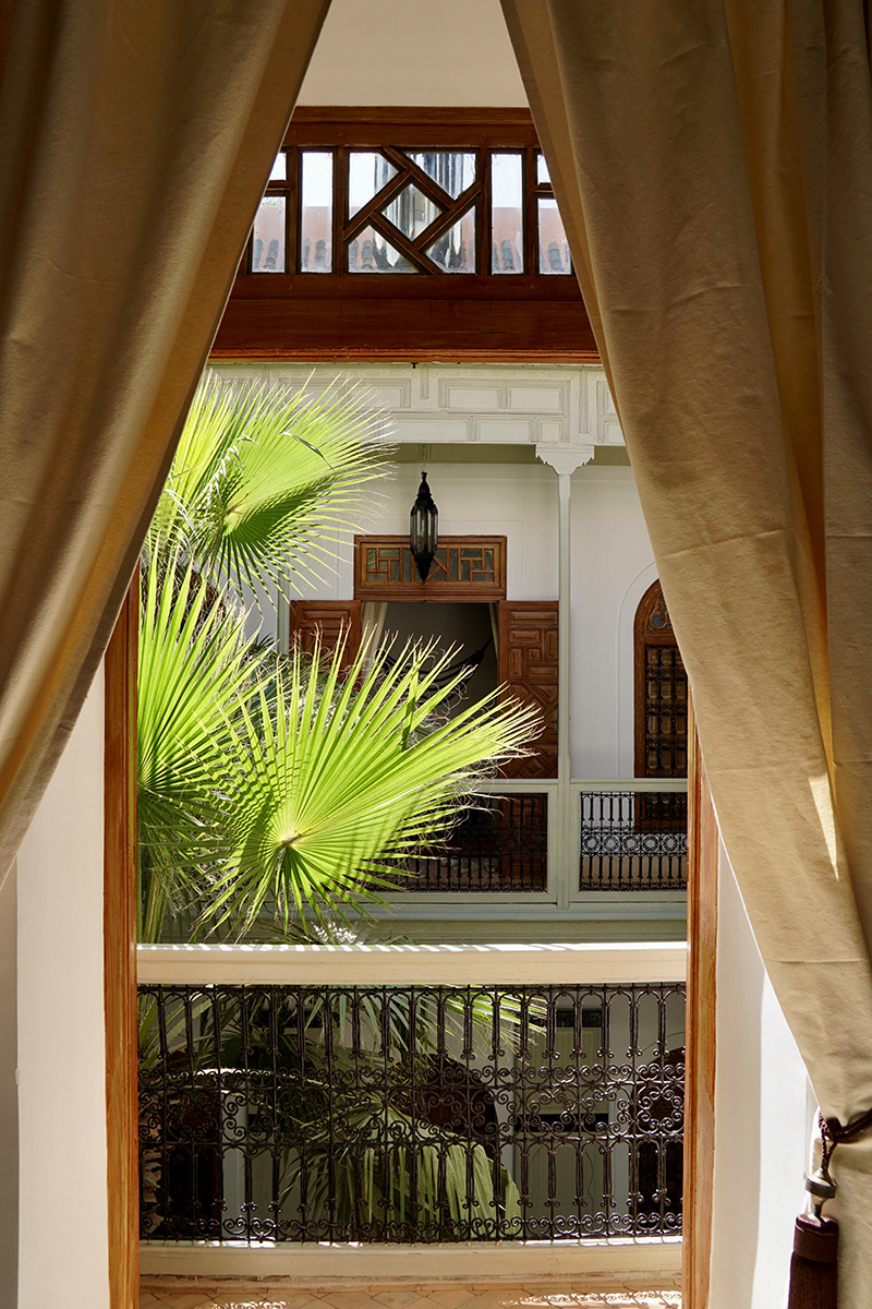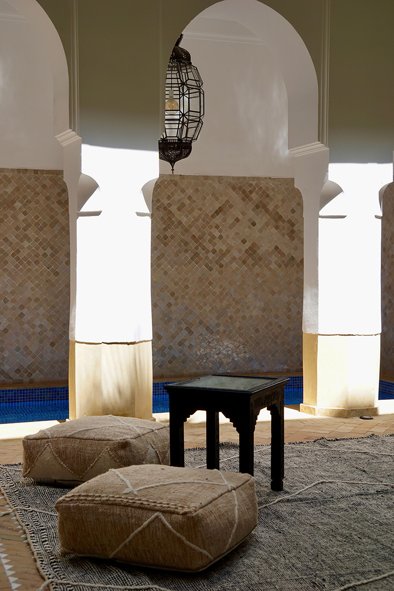 Au cœur vibrant de la Médina de Marrakech, derrière une porte en bois sculpté et des murs d’argile ocre, le patio s’ouvre comme une oasis secrète et paisible. Au centre, dans l’air tiède, les palmiers élèvent leur feuillage vers le ciel ouvert, baignant l’espace d’une lumière dorée. Le patio est bordé d’arcades élégantes, où le bois finement ciselé raconte les traditions de l’art. C’est un lieu suspendu dans le temps, à la fois intime et majestueux, où chaque détail invite à la contemplation. Après une journée passée à explorer la Médina, le hammam vous invite à un moment de détente ou rafraîchissez-vous dans la piscine du patio avant de monter sur la terrasse pour admirer le coucher du soleil.